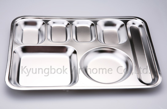 수저사찬식판 제품치수: 298*404*30 제품설명: 1. 사각형의 반찬그릇을 이루고 있는 형상에 수저를 담을 수 있는 홈을 갖춘 식판입니다. 2. 식판 가장자리에 경복만의 노하우로 전말이처리 되어 있어 손이 다칠 상황을 방지합니다.